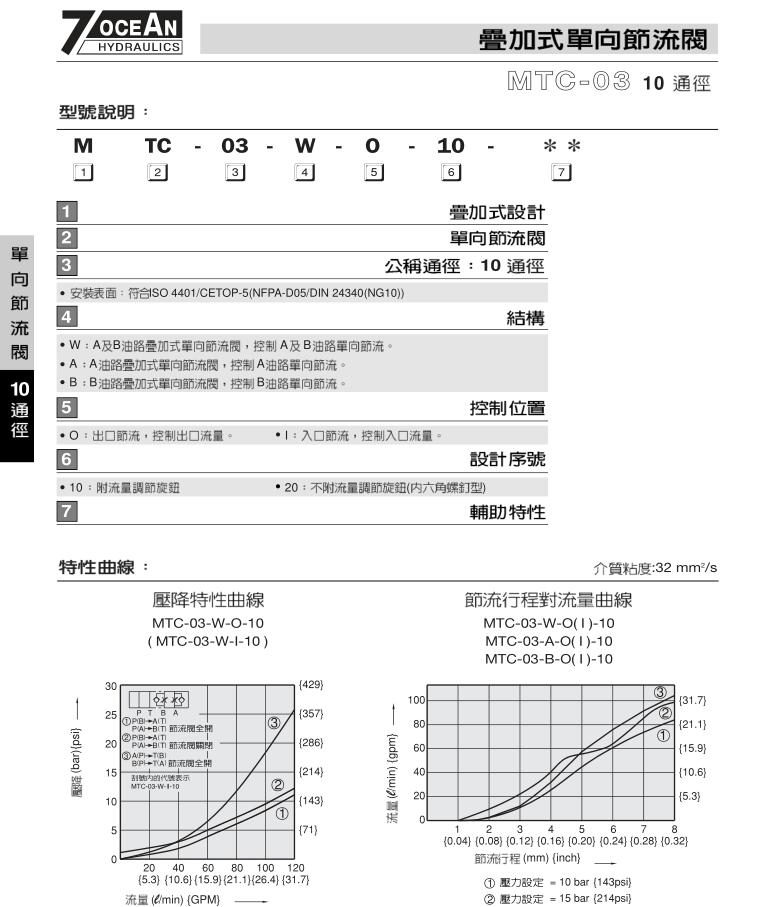 臺(tái)灣七洋7OCEAN疊加式單向節(jié)流閥部分型號(hào):