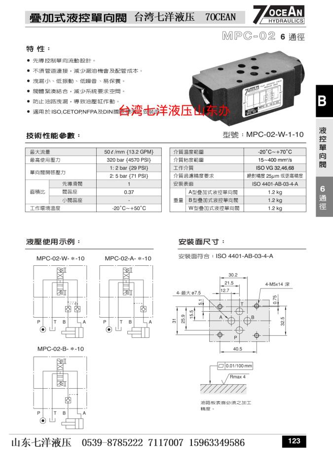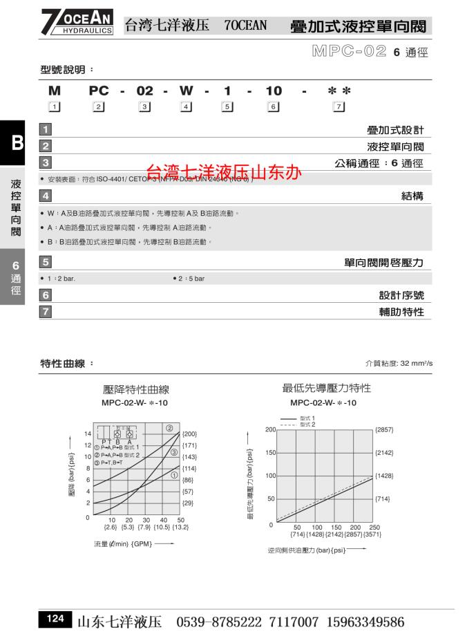 七洋7OCEAN液控單向閥MPC-02-W-1-10